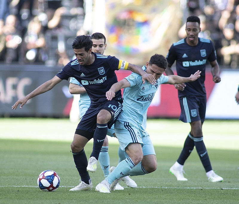 وأنهى لوس أنجليس إف.سي الشوط الأول متقدما بهدفين سجلهما كارلوس فيلا وإدواردو أتويستا في الدقيقتين 12 و39.