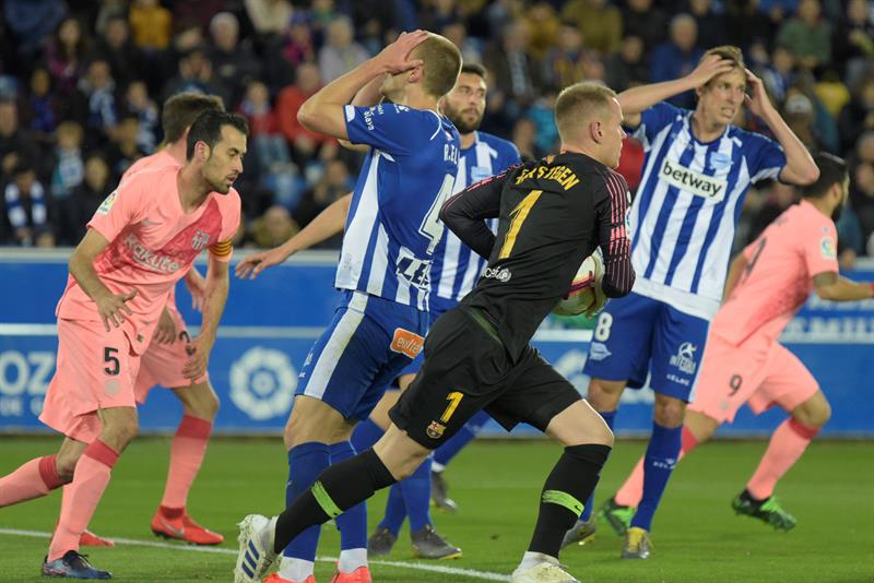 بات برشلونة على أعتاب الحفاظ على لقب الليجا للعام الثاني على التوالي بعد أن فاز على مضيفه ديبورتيفو ألافيس بهدفن دون رد اليوم، على ملعب (مينديزوروزا) ضمن الجولة الـ34 بدوري الدرجة الأولى الإسباني لكرة القدم.