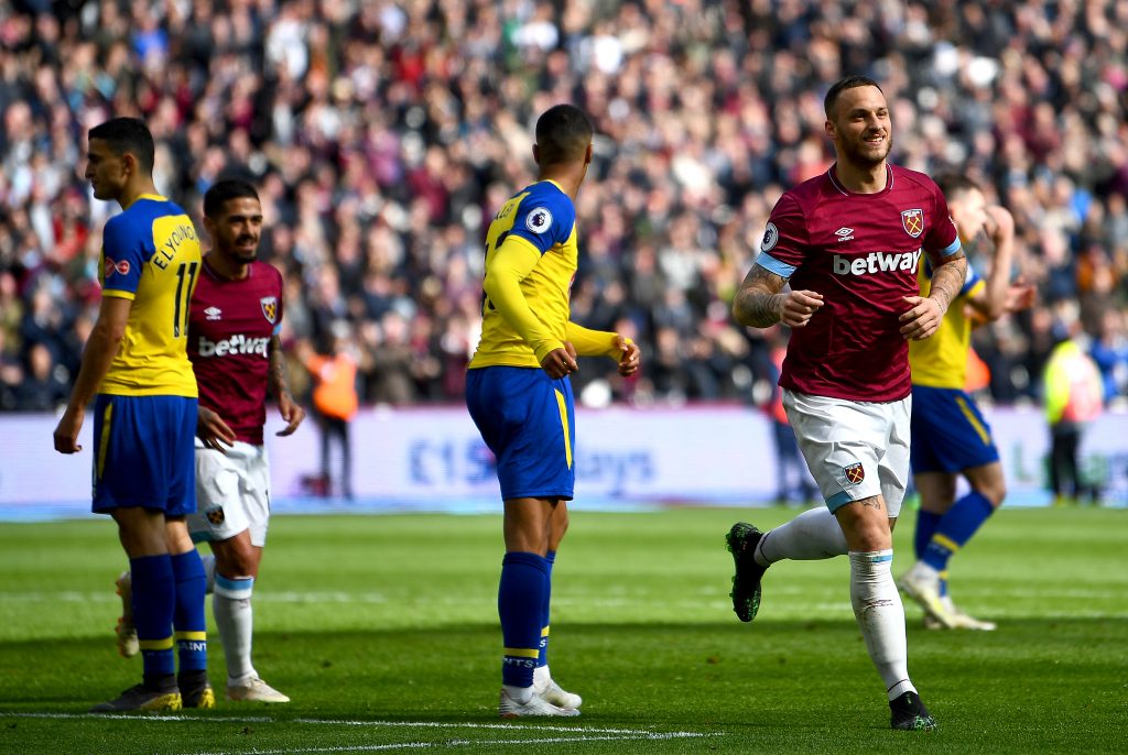 وفي مباراة أخرى، أكرم وست هام يونايتد ضيافة ساوثامبتون بثلاثية نظيفة على الملعب (الأولمبي) بلندن.