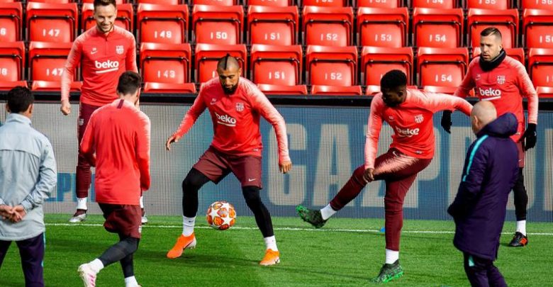 شهد المران مشاركة جميع لاعبي الفريق الأول الذين تم استدعاؤهم للسفر إلى المدينة الإنجليزية، باستثناء الفرنسي عثمان ديمبيلي الغائب للإصابة بتمزق في عضلة الفخذ الخلفية خلال مباراة سيلتا فيجو السبت على ملعب (بالايدوس) ضمن الجولة الـ36 لليجا.