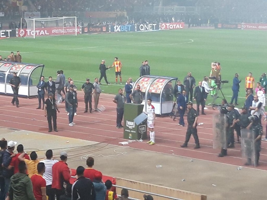 أنهى الحكم الجامبي باكاري جاساما المباراة بعد توقف دام لنحو ساعة ونصف الساعة منذ الدقيقة 60 عندما كان الترجي متقدما 1 / صفر ليحتسب النهائي لصالح الترجي بانسحاب الوداد البيضاوي المغربي.
