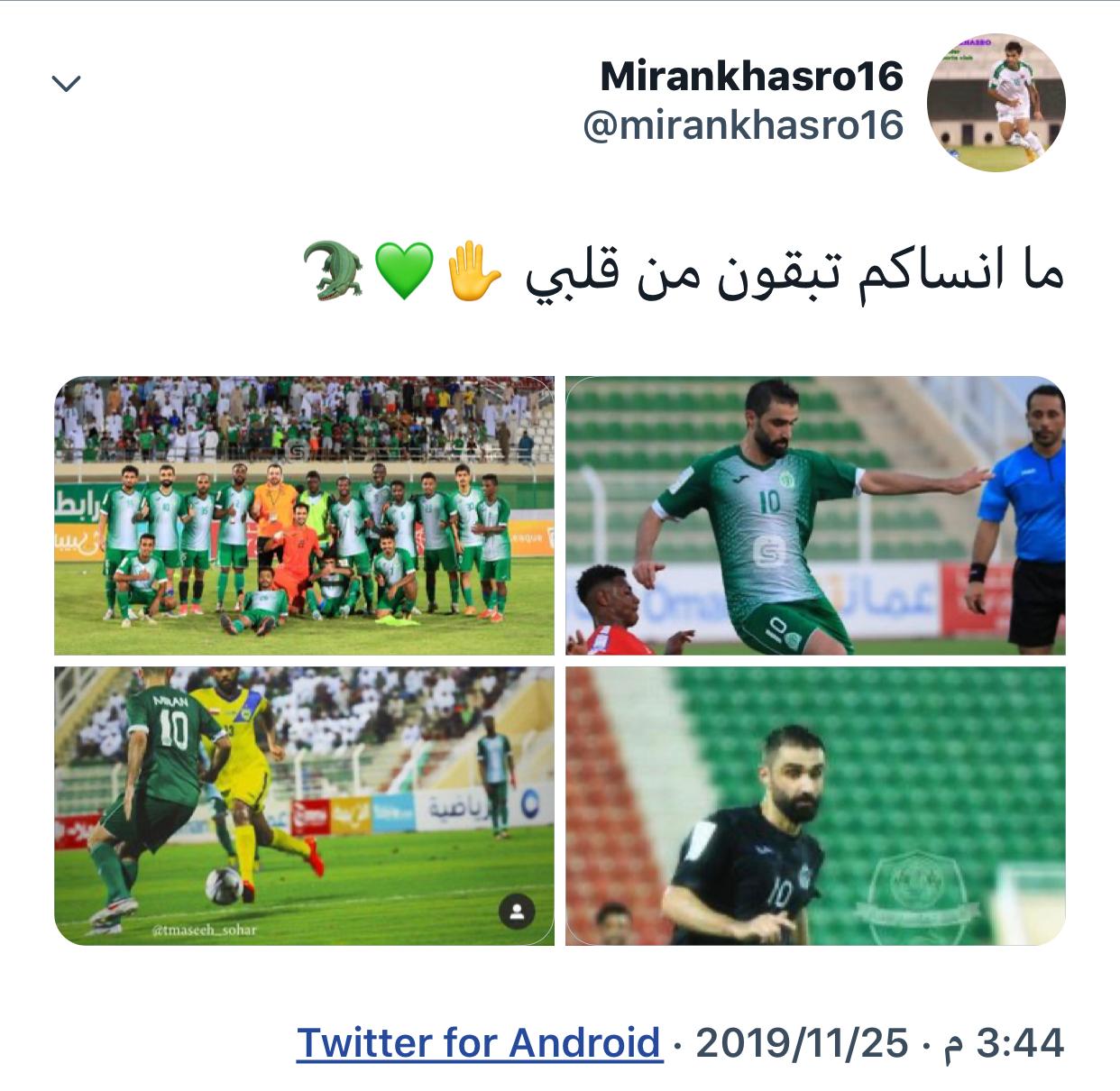 بعث المحترف العراقي في صفوف صحار ميران خسرو، رسالة لزملائه اللاعبين عبر موقع التواصل الاجتماعي “تويتر”.