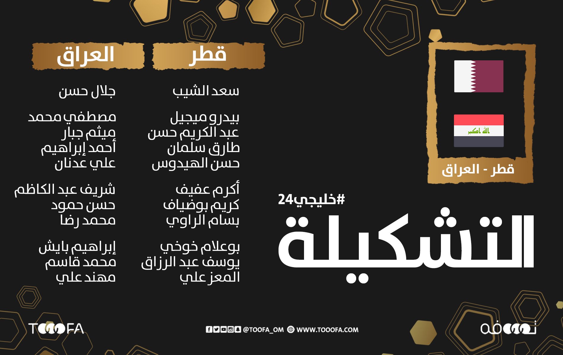 على أرضية ستاد خليفة المونديالي، افتتح العنابي القطري خليجي 24 في مواجهة ضد أسود الرافدين؛ مباراة لطالما حملت الكثير من التنافسية فيما سبق، واستمرت بذات المستوى في ليلة أمس.