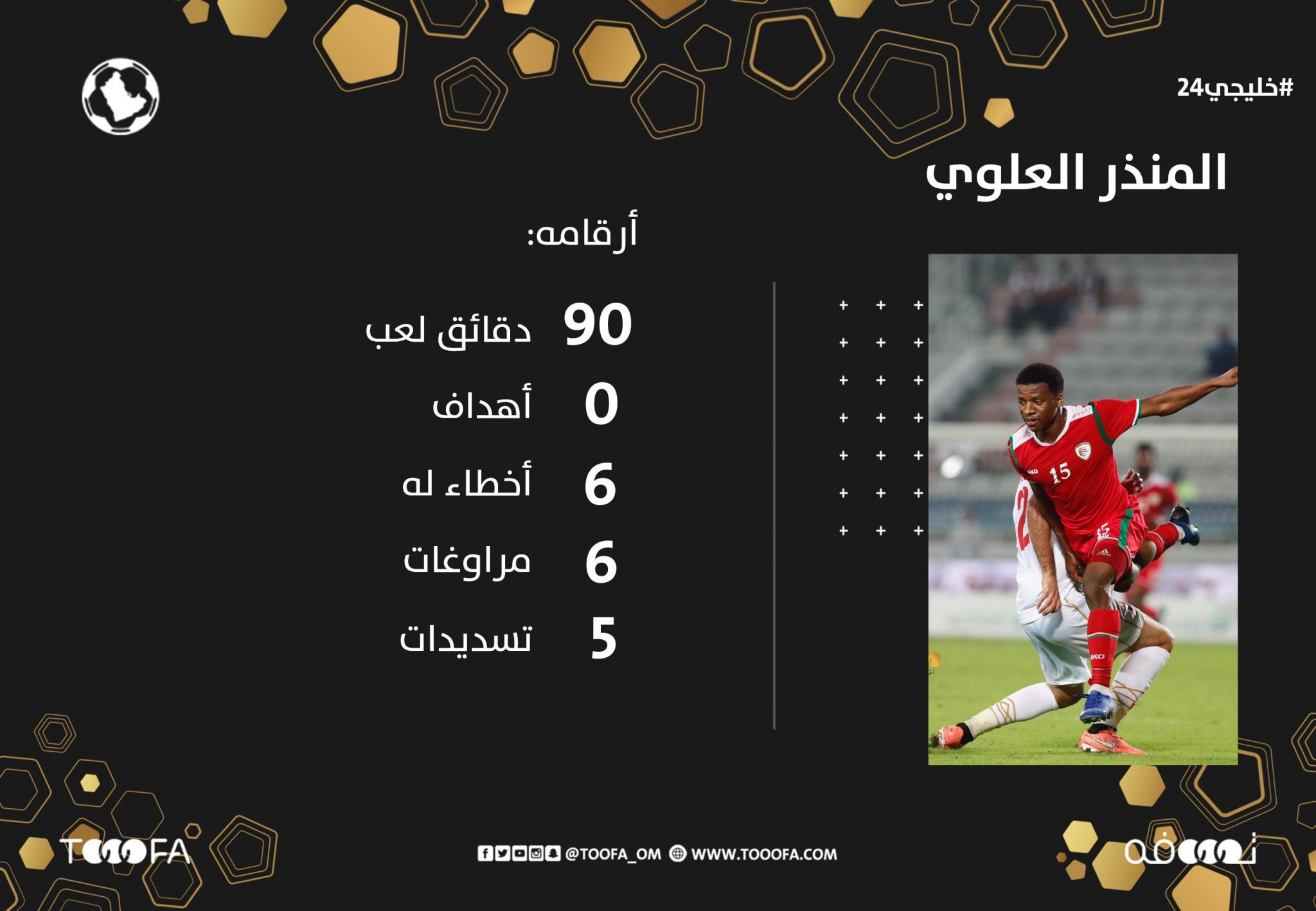 فيما الخيار الثاني لصناعة الفرص لمنتخبنا كان عبر محسن جوهر الذي استمر به منتخبنا على نفس خاصية الصناعة بكرات ساقطة خلف مدافعي البحرين الذين كان لهم النجاح بالسرعة والاستخلاص السريع والآمن أمام مهاجم وحيد فقد المساندة الفعلية من زملائه.