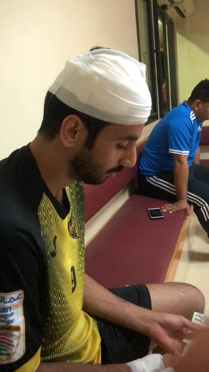 حيث تم عمل خياطة للجرح العميق في رأس أحمد الخروصي وتم علاج اللاعب خالد اليعقوبي.
