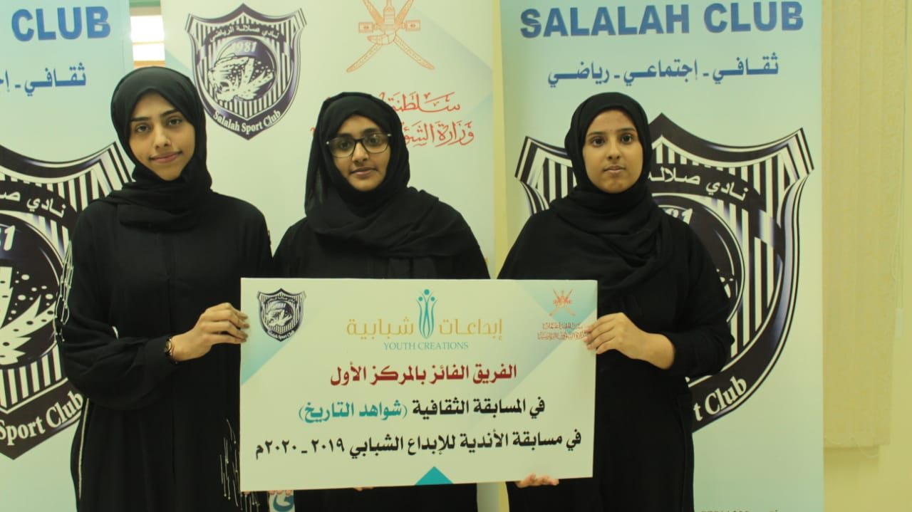 أعلنت اللجنة الشبابية بنادي صلالة نتائج مسابقة الأندية للإبداع الشبابي في نسختها السابعة في مرحلتها الأولى على مستوى النادي والتي شهدت مشاركة واسعة من مختلف الفئات العمرية في مختلف المجالات، حيث تنافس الشباب كل في مجاله وإبداعه وقامت لجان التقييم بالنادي بجهود كبيرة خلال عملية التقييم من أجل اختيار أفضل المشاركات وتحديد المراكز الفائزة.