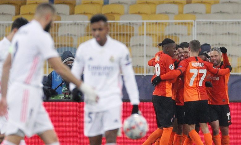 فجر فريق شاختار دونيتسك الأوكراني مفاجأة كبيرة وتغلب على ضيفه ريال مدريد الإسباني 2-0 اليوم الثلاثاء في الجولة الخامسة من مباريات المجموعة الثانية لدوري أبطال أوروبا لكرة القدم.