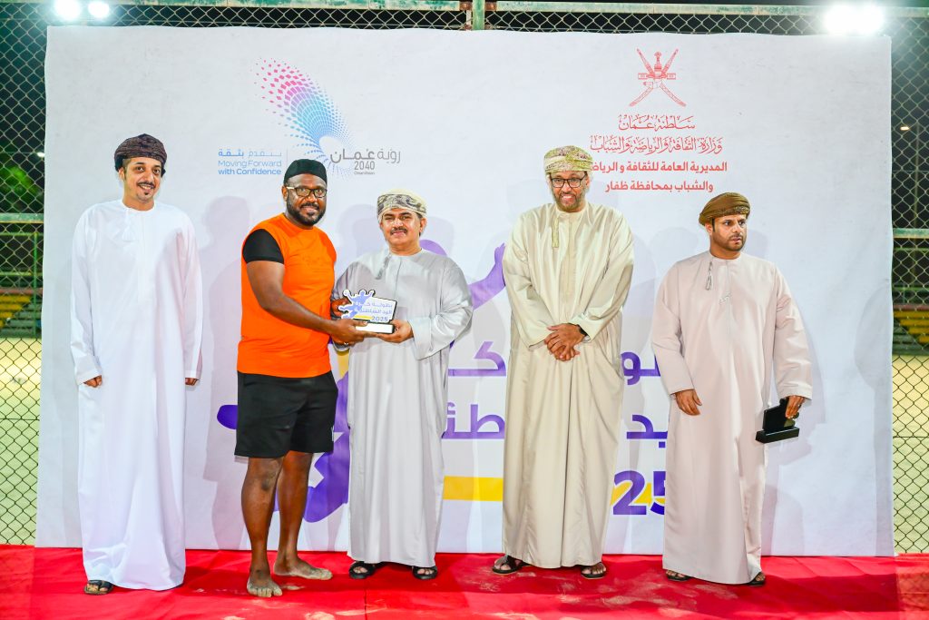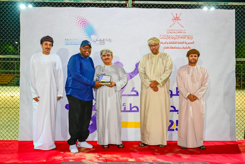 تم في ختام البطولة تمرين الفرق الفائزة وأفضل لاعب في البطولة طلال بن جاسم البراكة من فريق صلالة (ب) والطاقم التحكيمي والجهات والافراد المسهمبن في إنجاح البطولة.