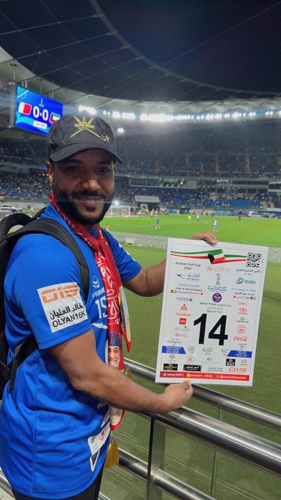 وعن عدد المباريات التي حضرها في كأس الخليج بالكويت أكد عمر الحجيم على أنه تمكن من حضور جميع مباريات كأس الخليج في الكويت البالغ عددها 15 مبارأة متتالية.